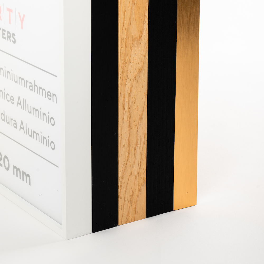 Ex Tax:16.00€Golden Aluminium- 7mm border- 15mm depth- 2mm plexiglass- 5mm MDF back..